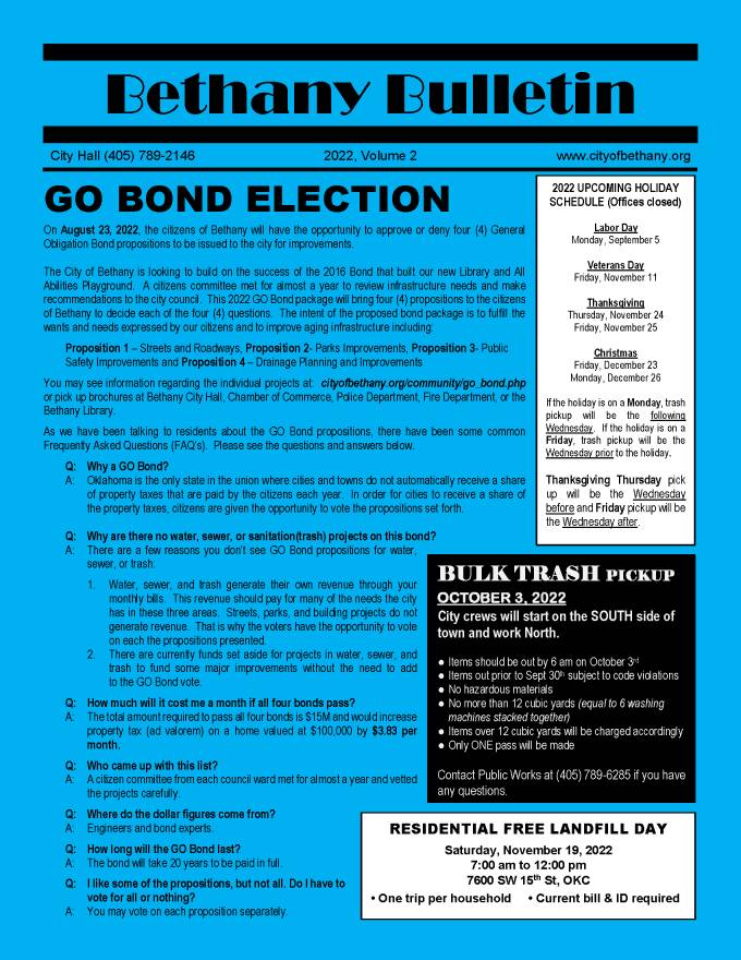 • Holiday Schedule, Free Landfill Days, and Bulk Pickup Events